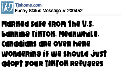 X says Marked safe from the U.S. banning TikTok. Meanwhile, Canadians are over here wondering if we should just adopt your TikTok refugees