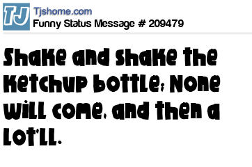 X says Shake and shake the ketchup bottle; None will come, and then a lot'll.
