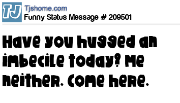 X says Have you hugged an imbecile today? Me neither. Come here.