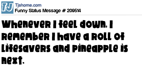 X says Whenever I feel down, I remember I have a roll of Lifesavers and pineapple is next.