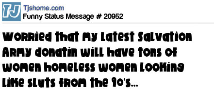 - # 9975 worried that my latest Salvation Army donation will result in homeless people looking like sluts from the 90s