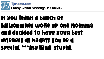 X is If you think a bunch of billionaires woke up one morning and decided to have your best interest at heart? You're a special ***ing kind stupid.