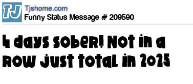 - # 184207 I've been sober for like 40 days. Not in a row, just 40 days total...