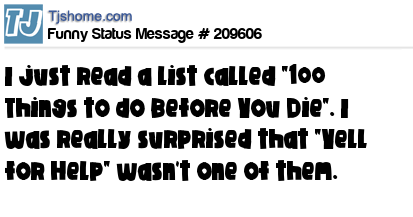 - # 21806 I just read a list of 'the 100 things to do before you die'. I'm pretty surprised 'yell for help' wasn't one of them...