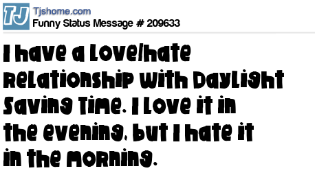 X says I have a love/hate relationship with Daylight Saving Time. I love it in the evening, but I hate it in the morning.