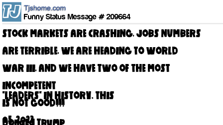 X is STOCK MARKETS ARE CRASHING, JOBS NUMBERS ARE TERRIBLE, WE ARE HEADING TO WORLD WAR III, AND WE HAVE TWO OF THE MOST INCOMPETENT