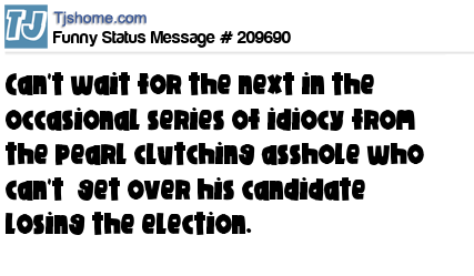 - # 209634 Oh, look. The poor loser below is still clutching his pearls because Trump won the election.