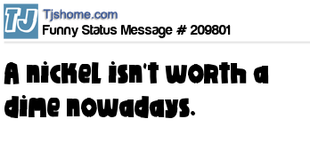 - # 95157 I'm at the bank depositing my nickel and dime bags... I told them I'll be back later with my papers... to open a joint account. :)