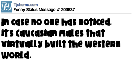 X says In case no one has noticed, it's Caucasian males that virtually built the western world.