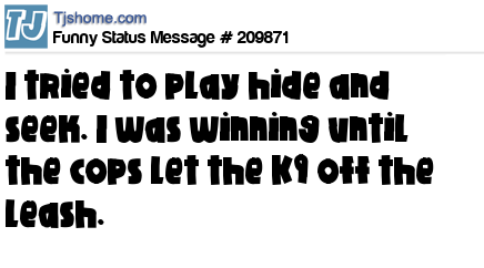 X is I tried to play hide and seek. I was winning until the cops let the K9 off the leash.