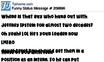 X is Where is that guy who hung out with Jeffrey Epstein for almost two decades? Oh yeah! LOL He's your leader now LMFAO