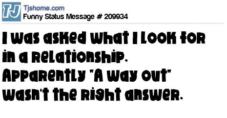 - # 124922 I was asked what I look for in a relationship. Apparently, "A way out" wasn't the right answer...