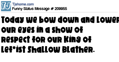 X says Today we bow down and lower our eyes in a show of respect for our King of Lef*ist Shallow Blather.