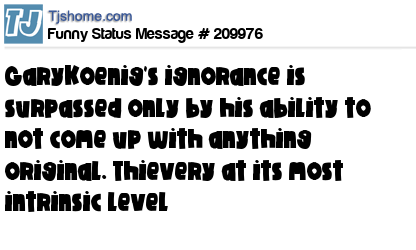 X says GaryKoenig's ignorance is surpassed only by his ability to not come up with anything original. Thievery at its most intrinsic level