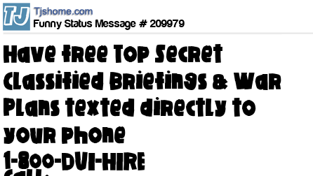 X is Have free Top Secret Classified Briefings & War Plans texted directly to your phone
