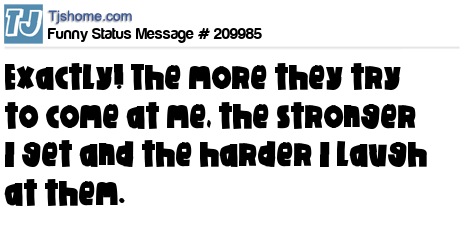 X is Exactly! The more they try to come at me, the stronger I get and the harder I laugh at them.