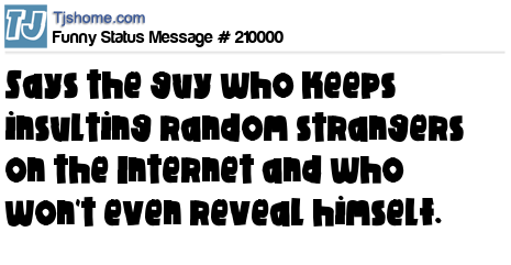 X is Says the guy who keeps insulting random strangers on the Internet and who won't even reveal himself.