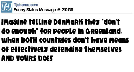 X says Imagine telling Denmark they "don't do enough" for people in Greenland, when BOTH countries don't have means of effectively defending themselves AND YOURS DOES😂