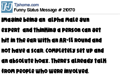 X is Imagine being an “alpha male gun expert” and thinking a person can get hit in the ear with an AR-15 round and not have a scar. Completely set up and an absolute hoax. There's already talk from people who were involved.