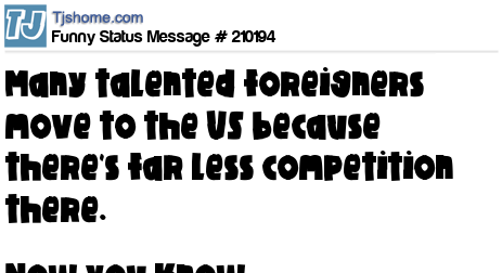 - # 210192 A talented Can*dian entertainer moving to Lamerica only does it because there's much less competition. Now you know 😎