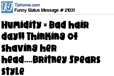 X Humidity = Bad hair day!! Thinking of shaving her head....Britney Spears style