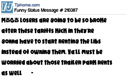 X is M^G^ losers are going to be so broke after these tariffs kick in they're gonna have to start renting the libs instead of owning them. Ya'll must be worried about those trailer park rents as well ðŸ¤
