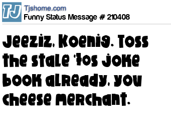 X says Jeeziz, Koenig. Toss the stale '70s joke book already, you cheese merchant.