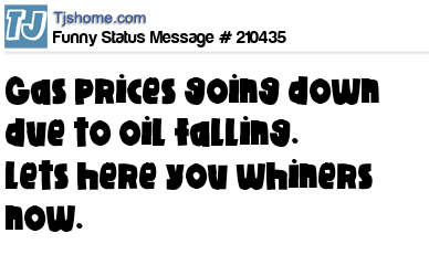 X says Gas prices going down due to oil falling. lets here you whiners now.