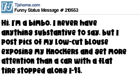 X says Hi, I'm a bimbo. I never have anything substantive to say, but I post pics of my low-cut blouse exposing my knockers and get more attention than a car with a flat tire stopped along I-95.