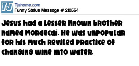 X says Jesus had a lesser known brother named Mordecai. He was unpopular for his much reviled practice of changing wine into water.