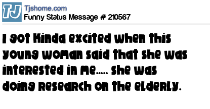 X is I got kinda excited when this young woman said that she was interested in me….. she was doing research on the elderly.