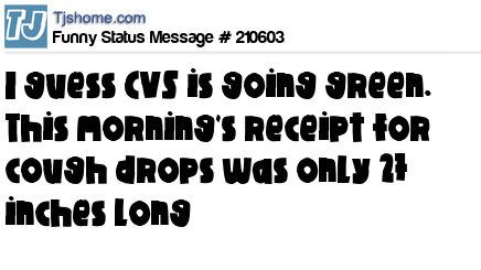 X says I guess CVS is going green. This morning's receipt for cough drops was only 27 inches long