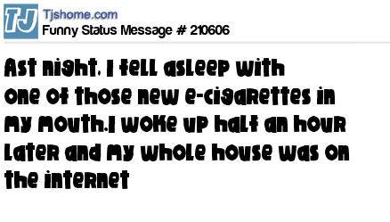 - # 148878 Accidentally fell asleep smoking an e-cigarette and when I woke up my whole house was on the internet.