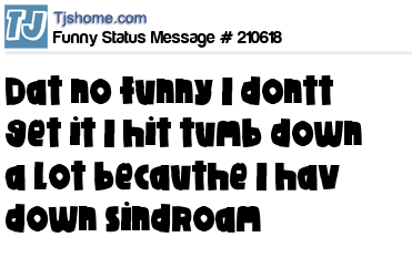 X says Dat no funny I dontt get it I hit tumb down a lot becauthe I hav down sindroam