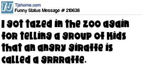 X says I got tazed in the zoo again for telling a group of kids that an angry giraffe is called a grrraffe.