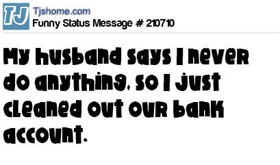 X says My husband says I never do anything, so I just cleaned out our bank account.