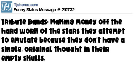 X says Tribute Bands: Making money off the hard work of the stars they attempt to emulate because they don't have a single, original thought in their empty skulls.