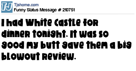 X is I had White Castle for dinner tonight. It was so good my butt gave them a big blowout review.