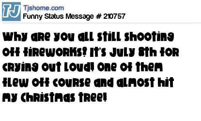 - # 192962 This is ridiculous its July 8th... Neighbors are still shooting off fireworks, one almost caught my Christmas decorations on fire..