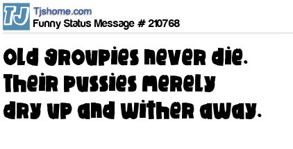 X says Old groupies never die. Their pussies merely dry up and wither away.