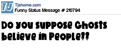 - # 28353 I believe in ghosts. I believe in aliens. But theres no way you will ever persuade me into believing in alien ghosts. Ridiculous.