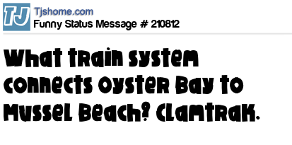X says What train system connects Oyster Bay to Mussel Beach? Clamtrak.
