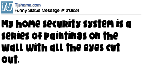 X says My home security system is a series of paintings on the wall with all the eyes cut out.