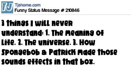 X says 3 things I will never understand: 1. The meaning of life. 2. The universe. 3. How Spongebob & Patrick made those sounds effects in that box.