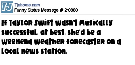 X says If Taylor Swift wasn't musically successful, at best, she'd be a weekend weather forecaster on a local news station.