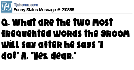 X says Q. What are the two most frequented words the groom will say after he says "I do?" A. "Yes, dear."