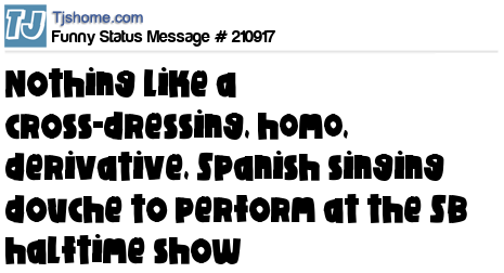 X says Nothing like a cross-dressing, h0m0, derivative, Spanish singing douche to perform at the SB halftime show