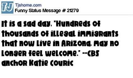 X says It is a sad day, "Hundreds of thousands of illegal immigrants that now live in Arizona, may no longer feel welcome." --CBS anchor Katie Couric