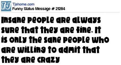 X Insane people are always sure that they are fine. It is only the sane people who are willing to admit that they are crazy
