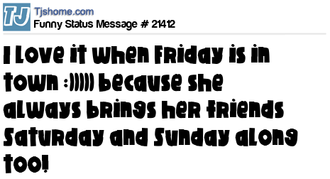 X I love it when Friday is in town :))))) because she always brings her friends Saturday and Sunday along too!